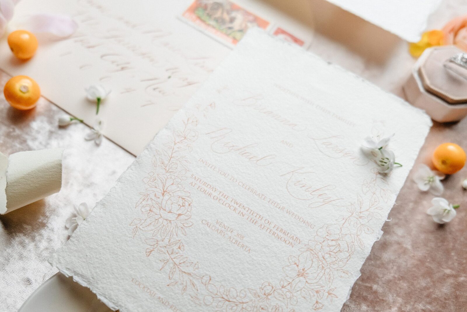 Together with amazing local vendors Fall for Florals, Modern Luxe Rentals, Pretty Sweet Co., MSlay Studio, Alannah Hilton, and Debbie Wong Design, (and so many more amazing vendors), we designed the ultimate modern wedding inspiration around the colour Peach, and we think you’ll be just as obsessed as we are!