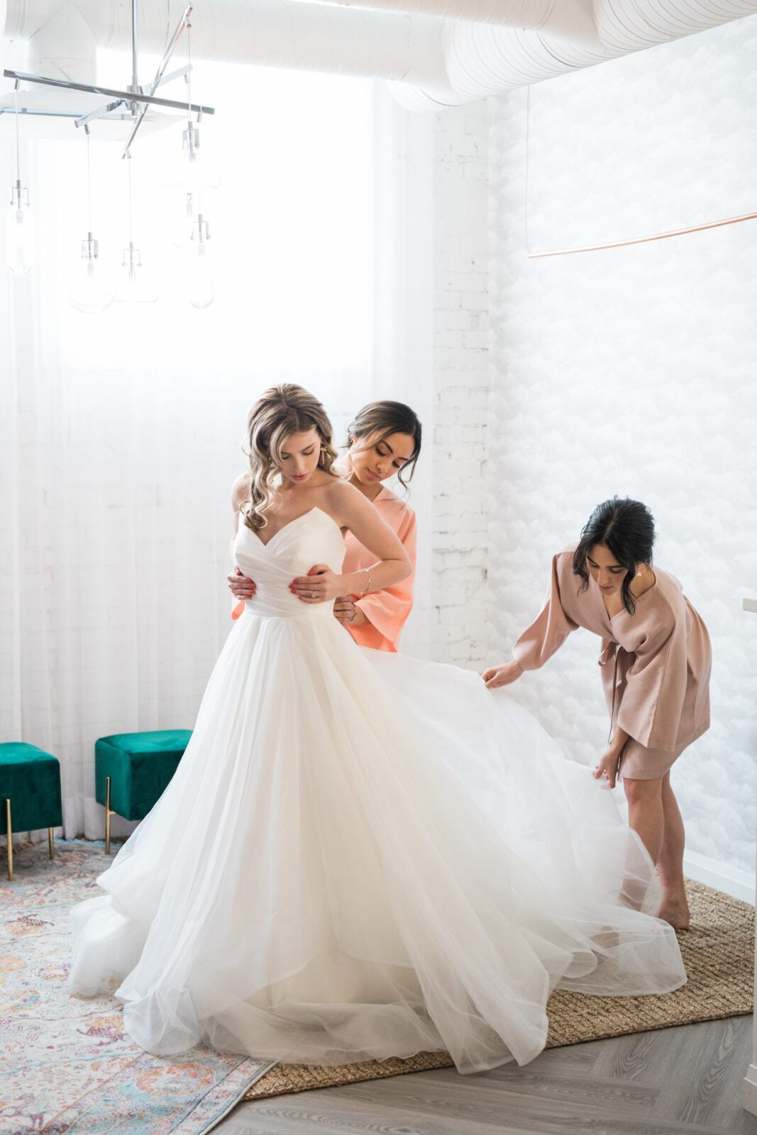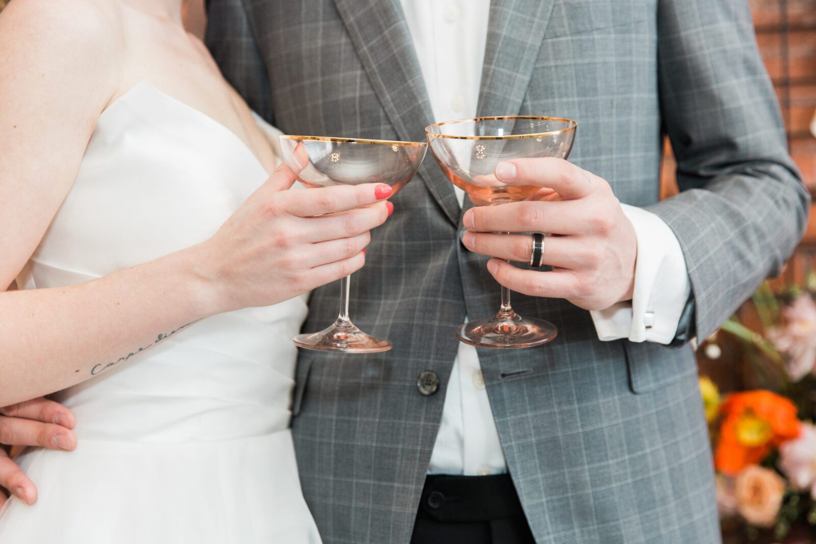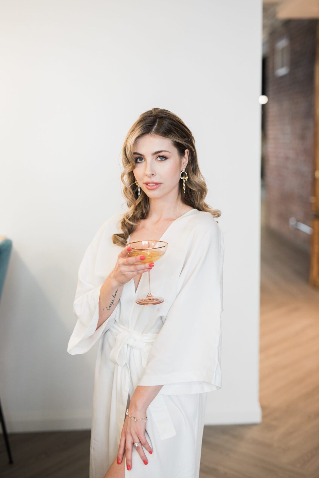 Workshop: True to Hue Workshops: PEACH // Design & Styling: Rebekah Brontë Designs // Lead Photographers: Sarah Beau & Bretton Grassie Florals: Fall for Florals // Hair: MSlay Studio // Makeup: Alannah Hilton // Jewelry: Joanna Bisley Designs // Rings: Alberta Diamond Exchange // Rentals: Modern Luxe Rentals // Stationery: Debbie Wong Design // Robes: Shop Monograph // Venue: Venue308 // Dress Boutique: The Bridal Boutique // Menswear: Ed William’s Menswear // Cake: Pretty Sweet Co. // Videography: Elora May Creative
